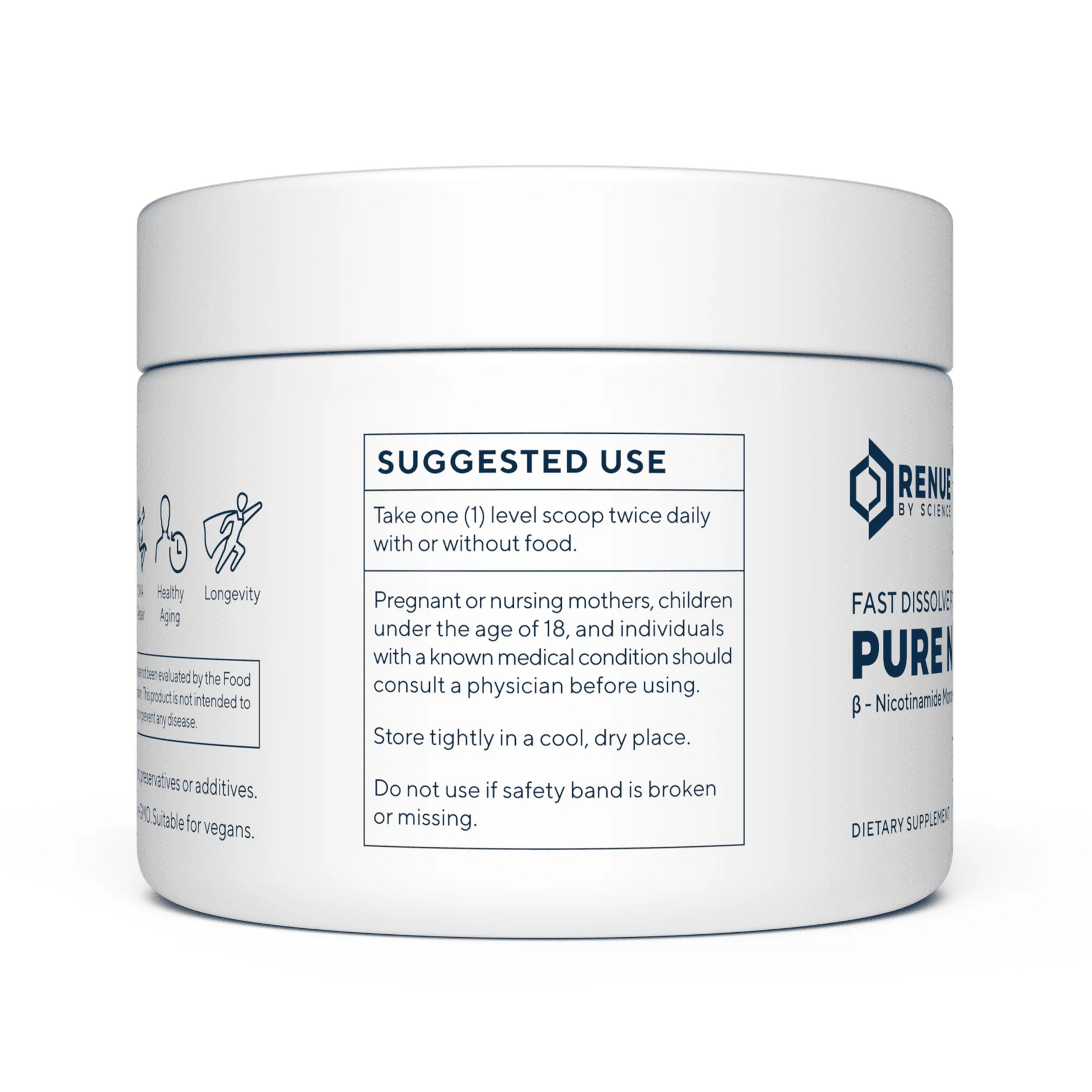 Our NMN Powder is 100% pure crystalline Nicotinamide Mononucleotide, designed for absorption under the tongue for superior bioavailability compared to regular capsules.